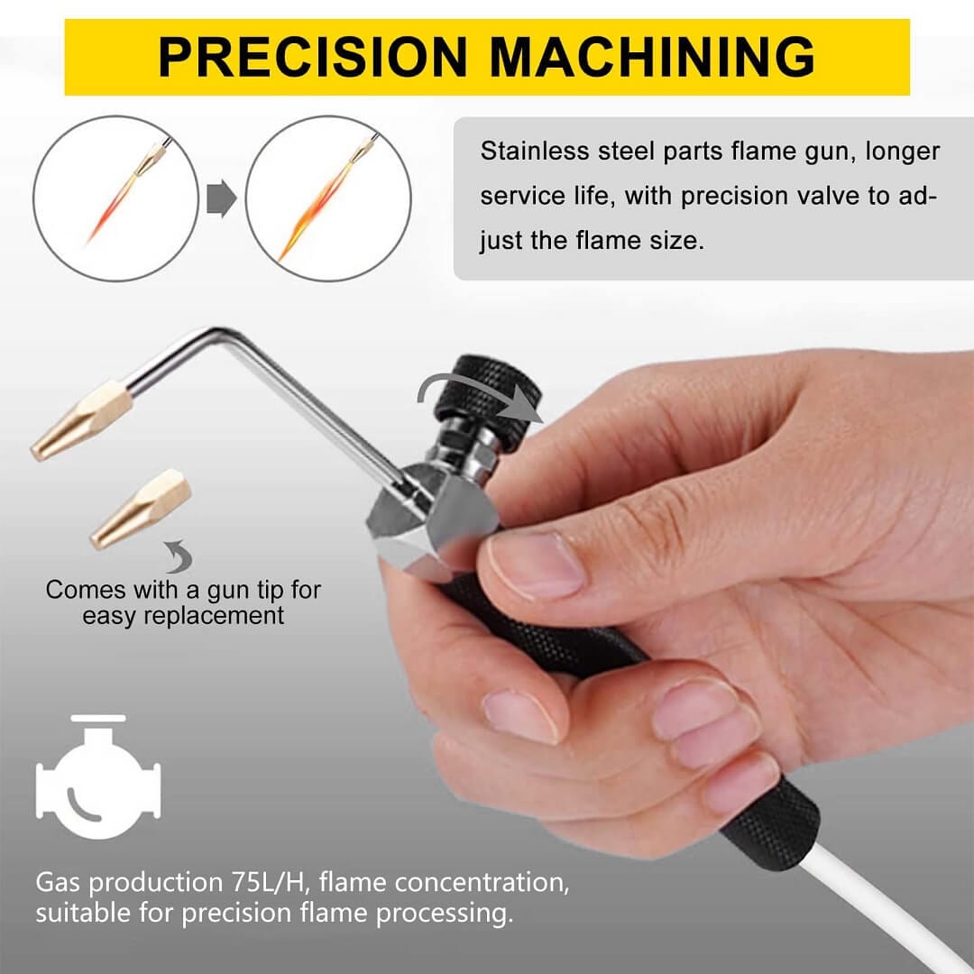 【Environmental Protection】The flame polisher uses water as the raw material to decompose hydrogen and oxygen, the product of combustion is only water vapor, which does not pollute the processed workpiece.