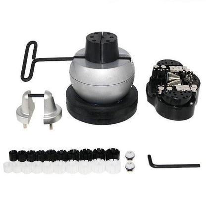 5" Ball Vise Setting Jewelry block rubber base with 59 Pcs attachment Designed for a unique combination of solid work support in a small and size armchair, it has a self-centering jaw system manufactured for stone setting, small, engravings, and other precision work. The internal rotation brake system allows the user to choose the amount of rotation resistance of the last intervening lock. Its low profile is ideal for microscope work