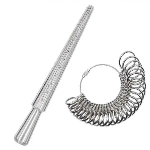Ring sizer mandrel made of aluminum. 27-piece ring sizer kit made of stainless steel