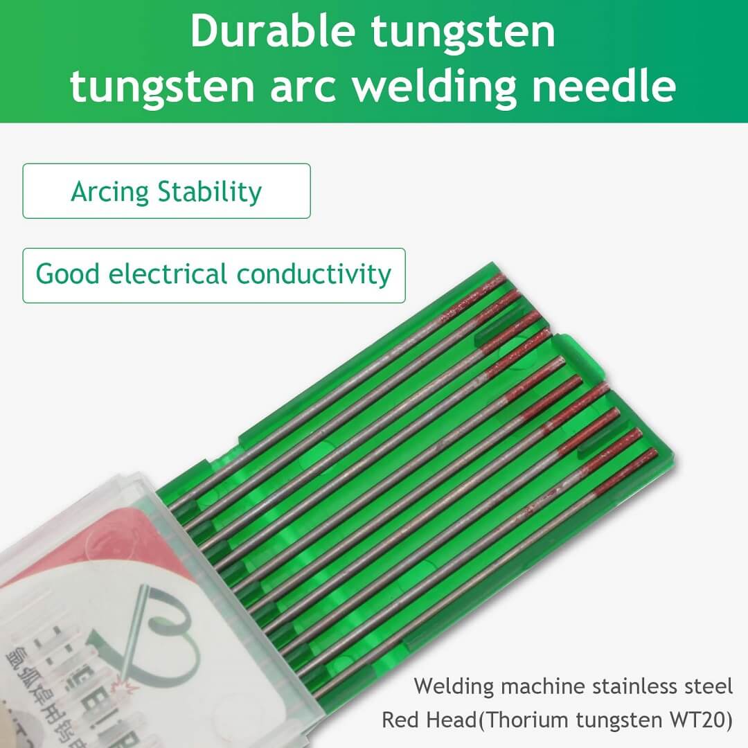 Tungsten electrodes size: ①1.0mm x 150mm ②1.6mm x 150mmThe tungsten rods can be very good operation even in high current range on DC