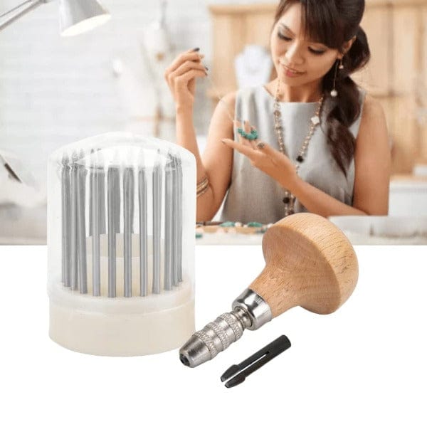 Beading Tools are tools for Jewelry Setting and are used to form beads that hold diamonds, pearls and stones in mounting settings. The Set contains 23-Beaders with the tool handle all in a convenient easy to use plastic clear domed stand.