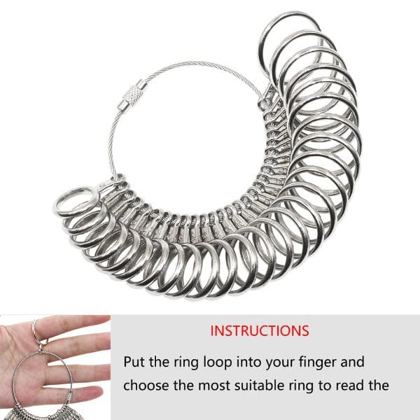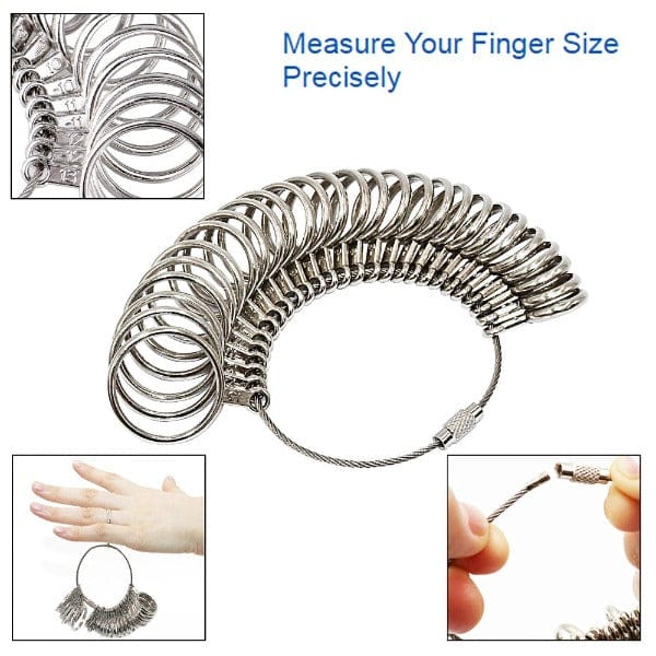 Ring sizer: 27pcs ring sizer or finger gauge made of alloy metal, measures the size of your fingers for making rings. Fine workmanship With a round outside and flat inside, smooth edges do not hurt your hands. Perfect for measuring wedding rings, class rings, and other wide rings.