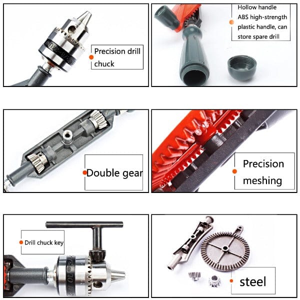 Exquisitely Crafted to Take a Beating: With double Pinions running very strong, this steel cast construction hand drill with comfortably smooth abs engineering plastics handle will never let you down.