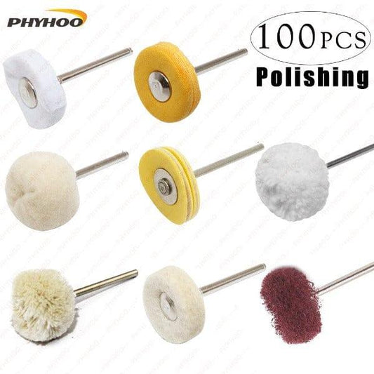 100pcs Multifunctional Wool Felt Mandrel Mounted Grinding Polishing Set