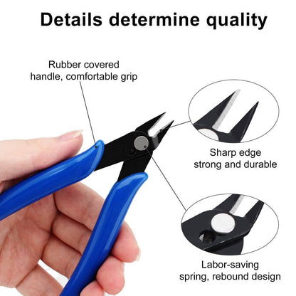 CUTTING PLIERS: Rubber covered handle,comfortable grip.Sharp edge strong and durable.It is used for cutting the redundant thread ends in the jewelry making process.